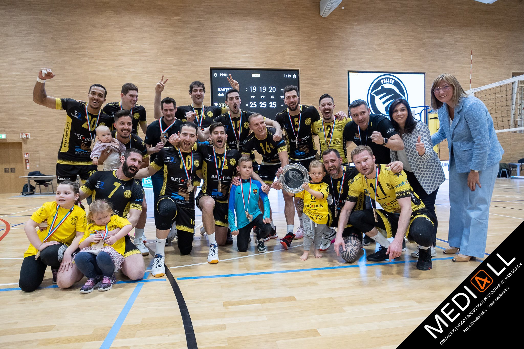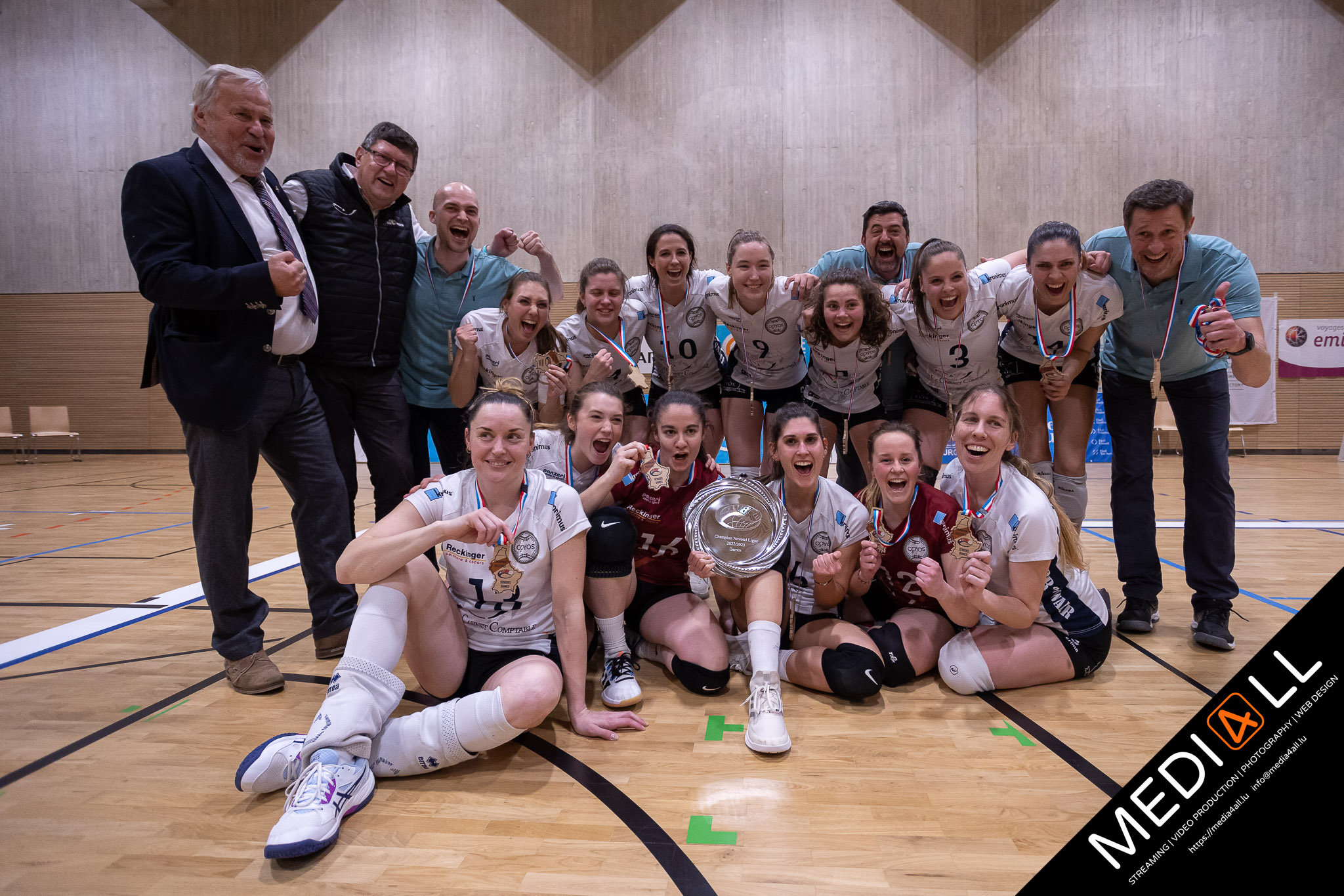 Do war den Dammematch scho vill méi spannend. D' Gym Volley huet virgeluecht, Walfer de Match gedréint an dunn huet Gym nees ausgeglach fir Walfer an de 5te Set ze zwéngen. Hei goung der Résidence a fréie Virsprong vu 5-1 duer fir de Match ze gewannen an domatt den 8. Championstitel an der Veräinsgeschicht ze feieren.