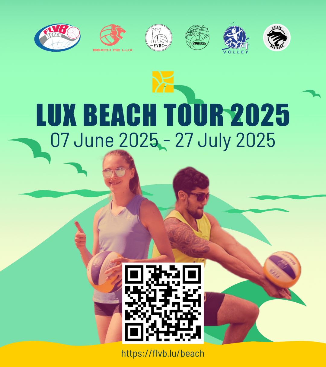 The Lux Beach Tour 2025 will be played on the weekend of July 19th (Men’s) and July 20th (Women’s). Semi-Finals and Finals will be played in Esch-sur-Alzette on the weekend of July 26th and 27th. Registrations need to be done until July 11th.