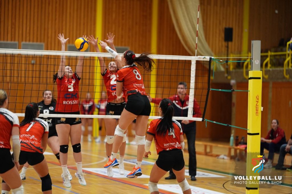 Bei den Dammen goufen et déi éischt 5 Sätz Matcher vun der Saison. Hei konnt d'Résidence Walfer e kille Kapp géint de Volley Bartreng behalen a Fenténg setzt sech géint Iechternach duerch. Donieft konnt de VC Stengefort zu Mamer e Saz mathuelen iwwerdeems den Escher VBC no serréiertem éischte Saz keng Chance hat géint d' Gym Volley.