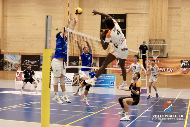Eischt Victoire fir den Opsteiger Volleyball Iechternach an der National Ligue Dames a, Gym verléiert zu Esch a Fenteng iwwerrascht Luerentzweiler. Den zweete Spilldag hat vill spannend Matcher ze bidden.